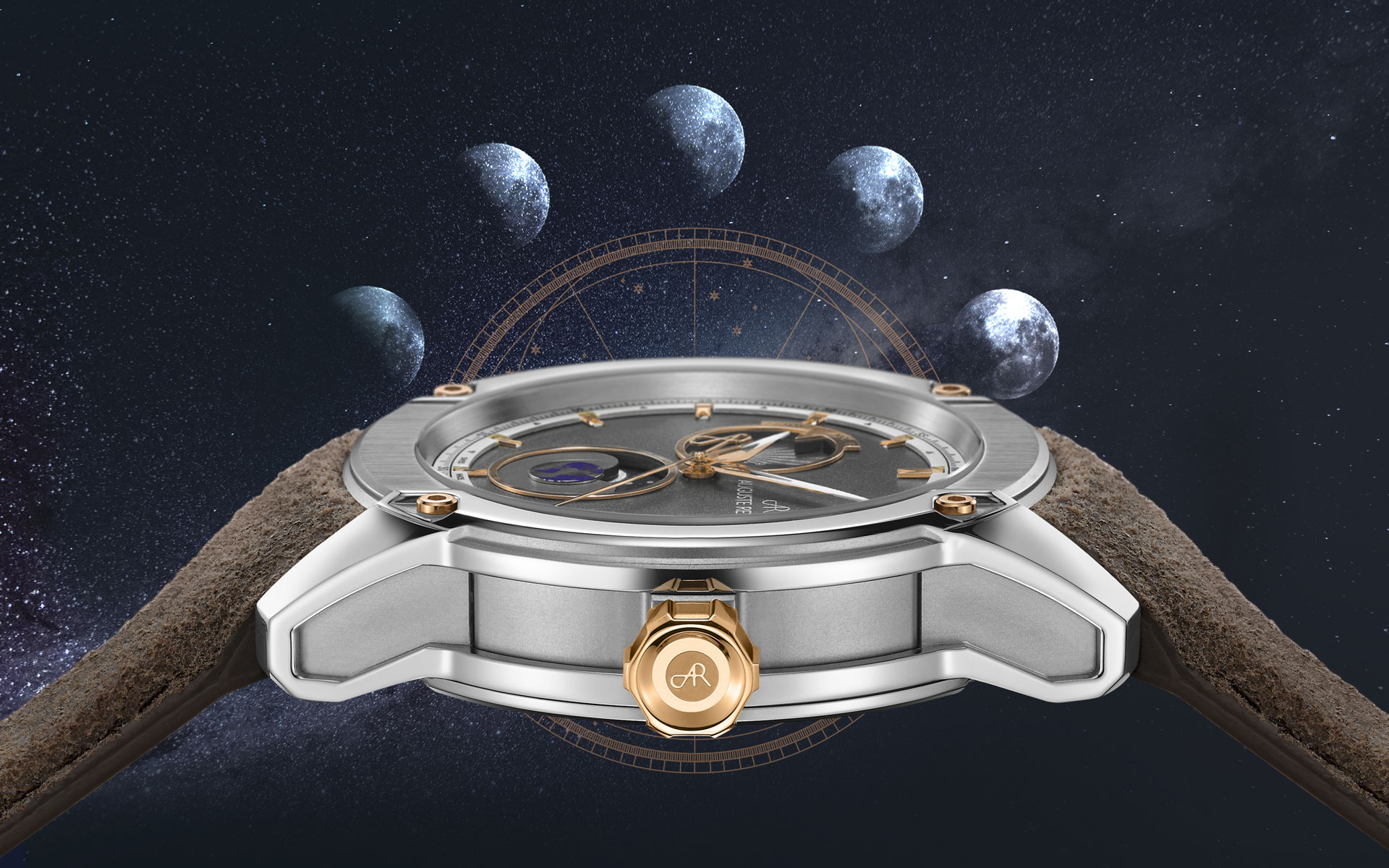 From the moon to the sun, the wonderful cycle of life, cadenced by an automatic movement.